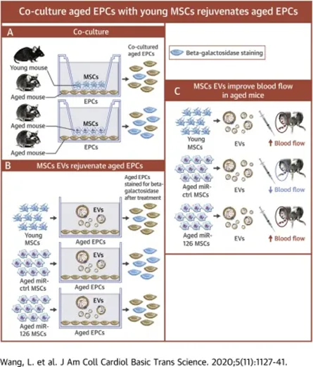 眾多研究表明了細(xì)胞療法在提升年輕態(tài)方面具有巨大潛力。有研究證明從老年小鼠中分離的上皮祖細(xì)胞(已衰老)在與間充質(zhì)干細(xì)胞或間充質(zhì)干細(xì)胞囊泡共培養(yǎng)后,可使導(dǎo)致衰老化的上皮祖細(xì)胞恢復(fù)活力[3]。