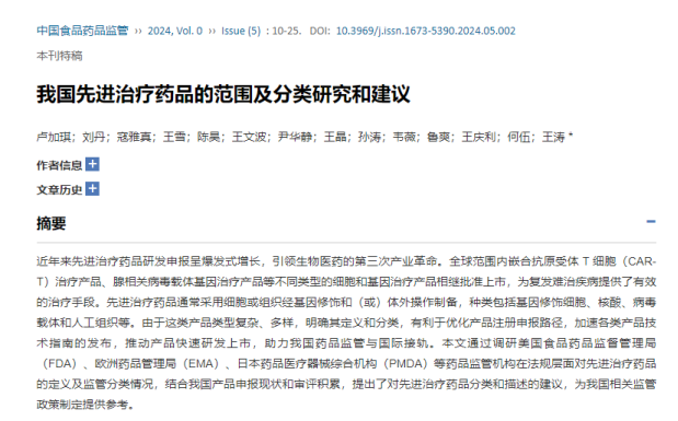 【參考資料】1.盧加琪,劉丹,寇雅真,王雪,陳昊,王文波,尹華靜,王晶,孫濤,韋薇,魯爽,王慶利,何伍,王濤*.我國先進治療藥品的范圍及分類研究和建議[J].中國食品藥品監(jiān)管,2024(5):10-26.