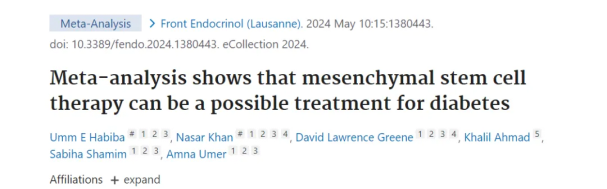 2024 年 5 月 10 日,美國亞利桑那州斯科茨代爾 R3 Medical Research LLC 研究與開發 (R&D) 部、巴基斯坦伊斯蘭堡 Pak-American Hospital Pvt. Ltd. 研究與開發 (R&D) 部的研究團隊在行業期刊Front Endocrinol (Lausanne)上發表了題為Meta-analysis shows that mesenchymal stem cell therapy can be a possible treatment for diabetes(薈萃分析顯示間充質干細胞療法可成為治療糖尿病的一種可行方法)的研究報告。