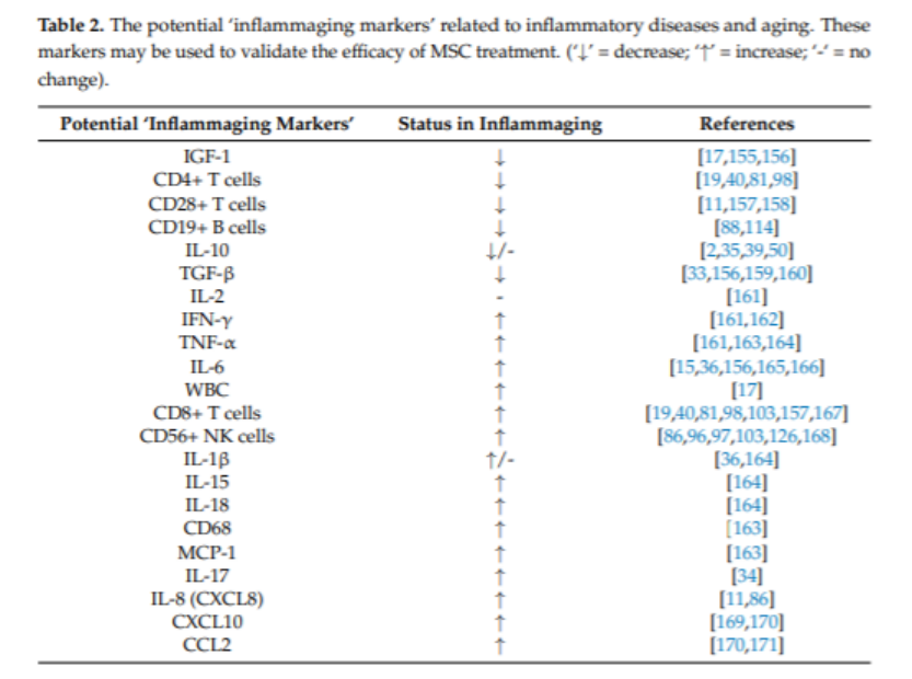 顯示了與炎癥性疾病和衰老相關(guān)的潛在“炎癥標(biāo)志物”,這些標(biāo)志物可用于驗(yàn)證間充質(zhì)干細(xì)胞針對(duì)其的潛力[1]。