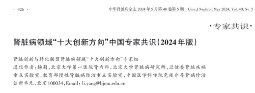針對全球腎臟病患病率激增、診療水平不足、臨床預后不佳、醫療負擔重這一現狀帶來的嚴峻挑戰,中國腎臟創新與轉化聯盟(China Kidney Innovation Association,CKIA)聚焦臨床上迫切需要解決的痛點,深入分析腎臟病診斷、治療和研究過程中的關鍵難題,基于創新性、前瞻性、科學性及可行性的原則,綜合整理和提煉腎臟病領域“十大創新方向”。