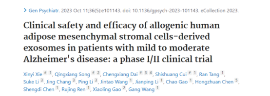 國內上海交通大學醫學院附屬瑞金醫院的研究團隊在General Psychiatry最新公布的一項研究的階段性結果,證實間充質干細胞來源的外泌體噴鼻應對阿爾茨海默I/II期臨床試驗的安全性和有效性。
