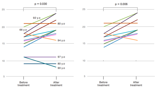 研究團隊共選取了13名患阿爾茲海默癥的受試者,通過鼻腔給予間充質干細胞外泌體,每周3次,研究進行8周后,受試者的HDS-R評分從15.6分提高到17.5分,顯示出顯著的認知功能改善。特別是在輕度至中度的受試者中,評分從17.2分提高到20.0分,效果更為顯著。