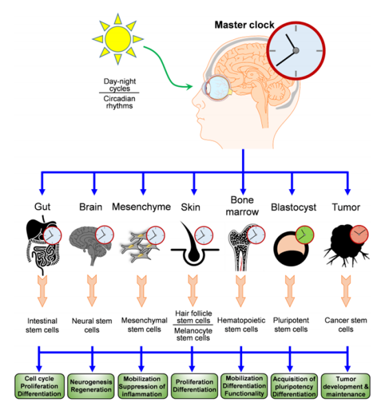 生物鐘節(jié)律對不同類型干細(xì)胞的影響