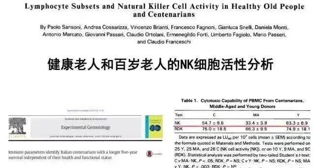 在一項(xiàng)關(guān)于百歲老人NK細(xì)胞活性的研究中,觀察了138名4-106歲的健康人,其中有26名世紀(jì)老人(百歲以上的老人)。