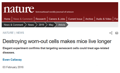 早在2016年,美國梅奧診所分子生物學家Baker在《自然》雜志刊登了他自己的研究成果:清除衰老細胞可使動物壽命延長20%-30%。另外免疫細胞是清除衰老細胞的主力軍,消除體內(nèi)老化細胞可改善一系列疾病,包括白內(nèi)障、糖尿病、骨質(zhì)疏松癥、阿爾茨海默癥、心臟疾病、腎臟問題、動脈阻塞以及與年齡相關(guān)的肌肉損失等。