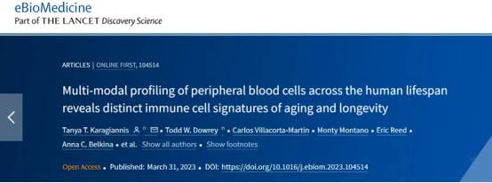 研究納入了14 位百歲老人和52名20-89歲的不同人群并將他們分為年輕、中年、老年、長壽四組人群。分析了納入群體的外周血單個核細胞(PBMCs)的基因表達及細胞特征,發(fā)現(xiàn)了一些重要的免疫特征。