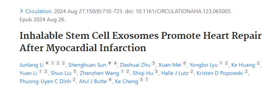 關于外泌體霧化應對心肌梗死方向的研究,加州大學舊金山分校等研究團隊于《Circulation》發表的一篇相關研究。團隊研發的干細胞衍生的外泌體霧化療法,創造性地利用霧化器將干細胞外泌體輸送至肺部,經肺泡 - 毛細血管屏障進入循環系統,最終精準抵達缺血心臟。同時,安全性評估表明,該療法對肺、脾、肝、腎等多器官均無毒性。這項研究為心肌梗死臨床治療筑牢基礎,未來有望成為患者新的 “生命守護者”。