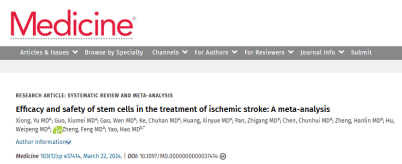 在《Medicine (Baltimore)》上也發表過一則薈萃分析,13項研究共同指向:干細胞技術可降低缺血性中風患者的死亡率并改善神經學預后。為缺血性中風應對提供了新的路徑。