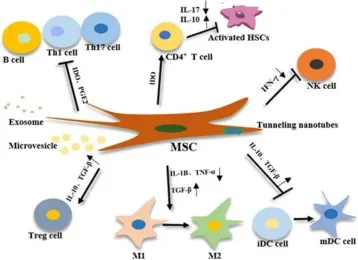 間充質干細胞具備通過分泌可溶性因子,比如PGE2、IL-10、TGF-β等,與先天性和適應性免疫系統(tǒng)的免疫細胞進行相互作用的能力,抑制TH1,TH17淋巴細胞分群,促進Treg細胞分化,促進M1向M2極化等這些因子有助于維持體內免疫系統(tǒng)的平衡狀態(tài)。