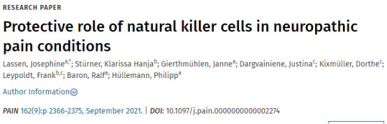 NK細胞在我們的免疫系統中扮演著重要的角色。它們在體內的作用包括攻擊腫瘤或病毒,急性疼痛時NK細胞活性增加。然而,在經歷慢性疼痛的人群中,NK細胞的效力似乎有所下降。如果NK細胞群的功能不完整,可能會使人無法長期解決神經性疼痛。