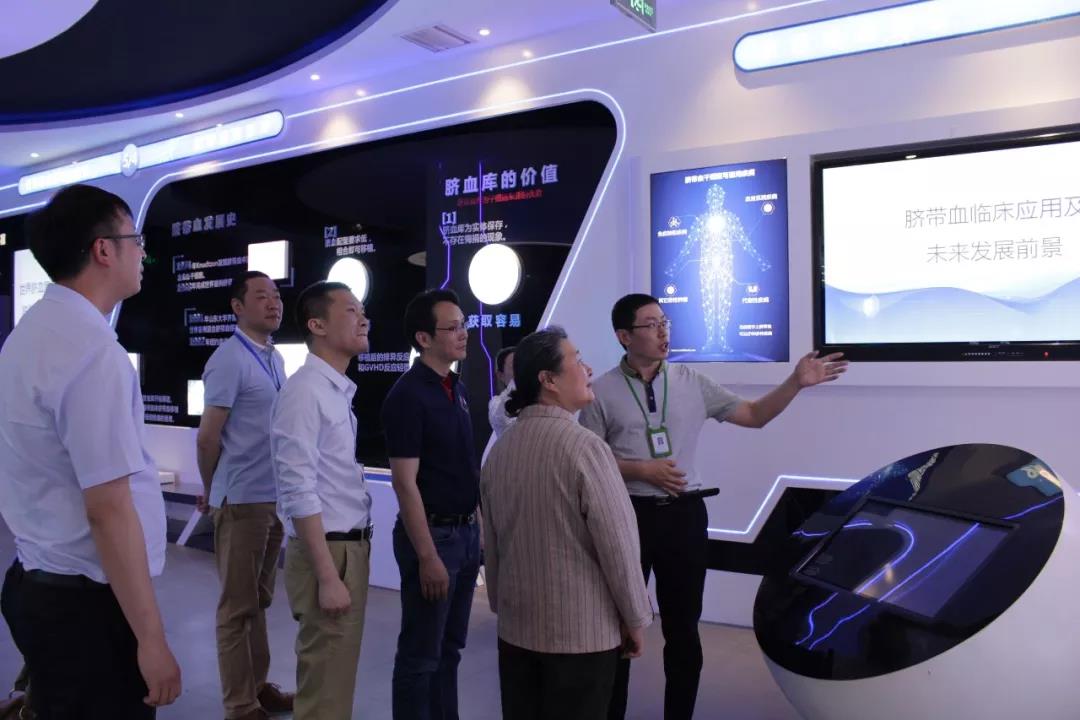 夏院士在齊魯細胞治療總經理韓鎮、副總譚毅等人陪同下先后參觀了科普館、實驗室、低溫展廳,并到康養中心進行了參觀、體驗。