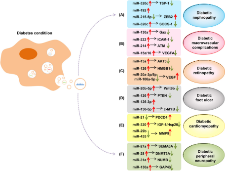 △ 圖2 外泌體miRNA與糖尿病相關并發癥的關系