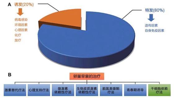 而處于生育期的女性提早閉經、生育能力喪失,還容易出現抑郁、焦慮等心理問題。現有的治療卵巢早衰的方法主要有激素替代治療、促排卵治療、免疫治療、卵巢組織移植、心理支持、運動和合理飲食等。
