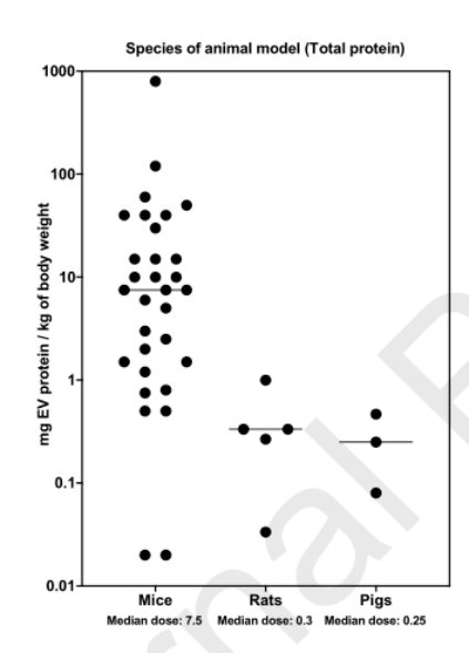 研究中EVs劑量的變化是否主要是由于動物物種的差異?