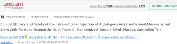 近日,韓國公布一項最新自體間充質干細胞治療膝關節炎的III期隨機雙盲安慰劑對照試驗結果。