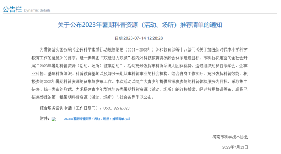 7月14日濟南市科協(xié)公布了關(guān)于2023年暑期科普資源(活動、場所)推薦清單通知,齊魯細胞生命科學體驗中心在列~