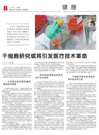 7月26日,《科技日報》健康板塊刊文《干細胞研究或將引發醫療技術革命》,指出目前全球進入人體試驗的干細胞研究超過8000項,類器官等干細胞研究新技術與新工具的開發,對解決由器官損傷、衰老等導致的器官功能障礙至關重要。