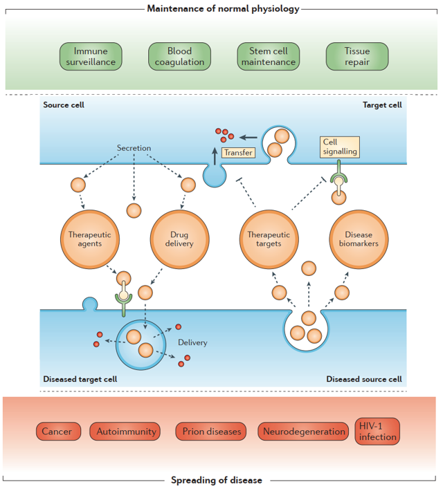 干細(xì)胞源外泌體(MSC-exo)是 MSC 分泌的獨(dú)特的亞細(xì)胞結(jié)構(gòu)的物質(zhì),從而介導(dǎo)了一些歸屬于MSC的生物學(xué)功能,如組織再生、免疫調(diào)節(jié)和神經(jīng)保護(hù)。外泌體參與了多種生物過程,如抗原呈遞、免疫反應(yīng)、腫瘤生長和細(xì)胞分化。外泌體通過在體液中循環(huán),在細(xì)胞之間傳遞物質(zhì)和信息,從而參與人體的多種生理和病理過程。外泌體在體液中的循環(huán)允許它們進(jìn)入附近或遠(yuǎn)處的靶細(xì)胞,并通過直接融合、內(nèi)吞和受體配體的結(jié)合在其有效載荷的傳遞中發(fā)揮作用。