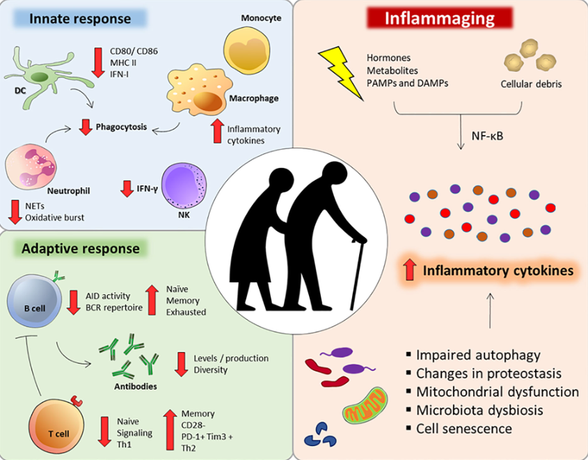 隨著年齡的增長,免疫細胞的數量和功能會逐漸下降,導致免疫力下降,從而出現以下情況: