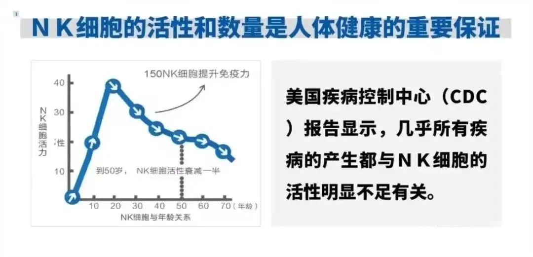研究發現,一個NK細胞就可殺死27個癌細胞。為我們的健康構筑起一道堅固的城墻,及時發現并殺死病變細胞,從而有效避免癌癥發生。但是一旦NK細胞的活性降低,它的戰斗力就會銳減,病毒、細菌和癌細胞就可能逃脫監視,大大增加患病的風險。