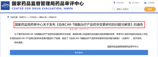 CDE發布《自體CAR-T細胞治療產品