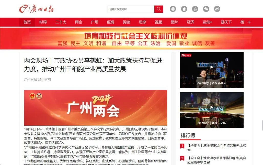 廣州市政協委員李鶴虹在2024年廣州兩會現場為干細胞建言獻策。李鶴虹建議,在立足廣州干細胞產業上、中、下游均有布局的基礎上,實現政策、人才、平臺、標準體系等配套支撐上進一步發力。可出臺推動干細胞產業高質量發展行動方案,結合廣州實際制定扶持干細胞產業的具體政策和工作舉措,建立與國際接軌的行業政策體系與監管模式。