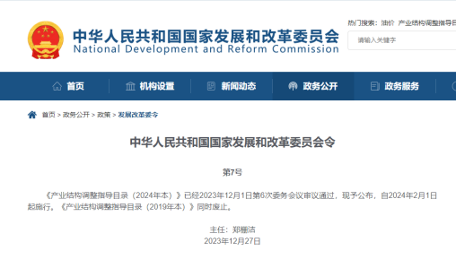 《產業結構調整指導目錄(2024年本)》