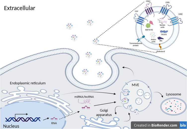 外泌體是一種由內體途徑形成、直徑在30-150nm的腔內囊泡,在多種體液(如:血漿、尿液、精液、唾液、支氣管液、腦脊液、母乳、血清、羊水、滑液、眼淚、淋巴、膽汁和胃酸)中均可被檢測的到[2]。