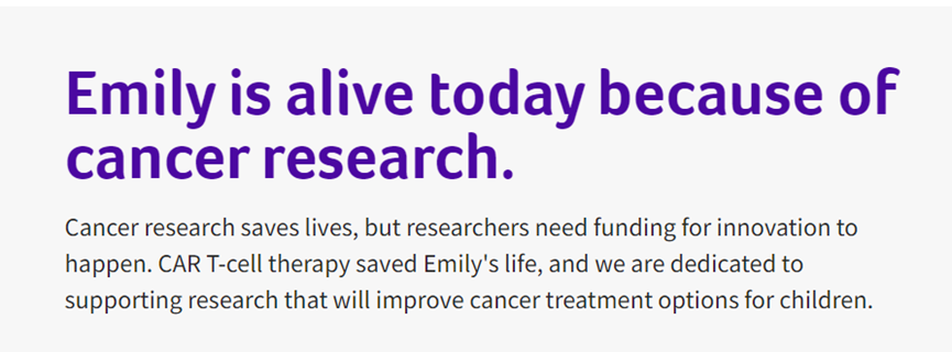 與往年不同,Emily今年不在社交平臺上曬出了自己的抗癌照,而是在官網寫著“Emily is alive today because of cancer research”,表明已開啟告別癌癥后的新生活。