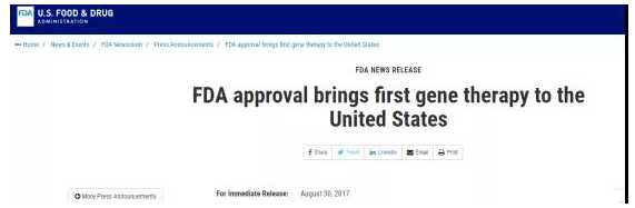 ▲FDA初次批準CAR-T免疫治療方法治療白血病(圖源:FDA)