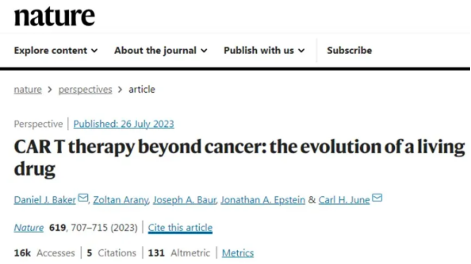 此前,CAR-T細胞療法創始人之一的Carl June及其同事在《nature》[1]雜志上討論了CAR-T免疫細胞的潛力。