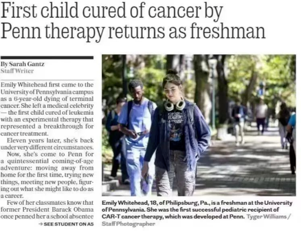 2024年5月10日,全球首位被CAR-T細胞免疫療法治愈的白血病兒童——艾米莉(Emily Whitehead)已無癌生存12周年。如今的她,已經成為賓夕法尼亞大學的一名大學生。