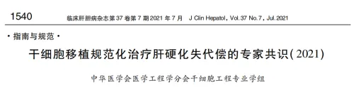 2014 年,中華醫學會醫學工程學分會干細胞工程學組發布了我國第一個干細胞移植規范化治療失代償期肝硬化的專家共識,2021年發布該共識的第二版。