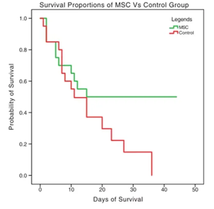 治療后,間充質干細胞治療組患者存活率明顯提高了2.5倍;此外,在合并其他疾病的新冠肺炎患者中,其存活率更是提高到了4.5倍[13]。