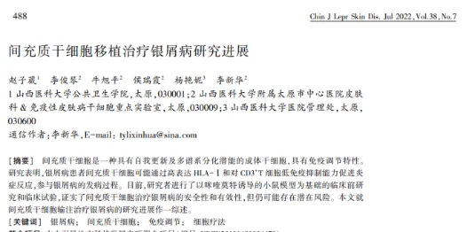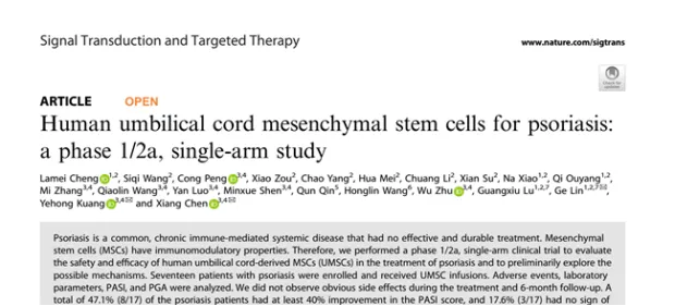 2022年8月5日,我國一醫院在Nature子刊《signal transduction and targeted therapy》發表間充質干細胞在銀屑病反向的最新臨床研究結果[3]。