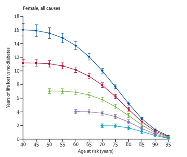 結果發現,每早10年患2型糖尿病,預期壽命就會減少約4年。特別是在30歲時就被診出2型糖尿病的人,預期壽命可能會縮短多達14年。對 19 個高收入國家的數據分析發現,即使是那些直到晚年才患上這種疾病的人(50 歲時才被診斷出患有這種疾病),其預期壽命也可能會下降多達 6 年。